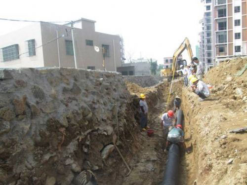 9、獨(dú)特的電熔連接和熱熔對接、熱熔承插連接技術(shù)使接口強(qiáng)度高與管材本體,保證了接口的安全可靠。